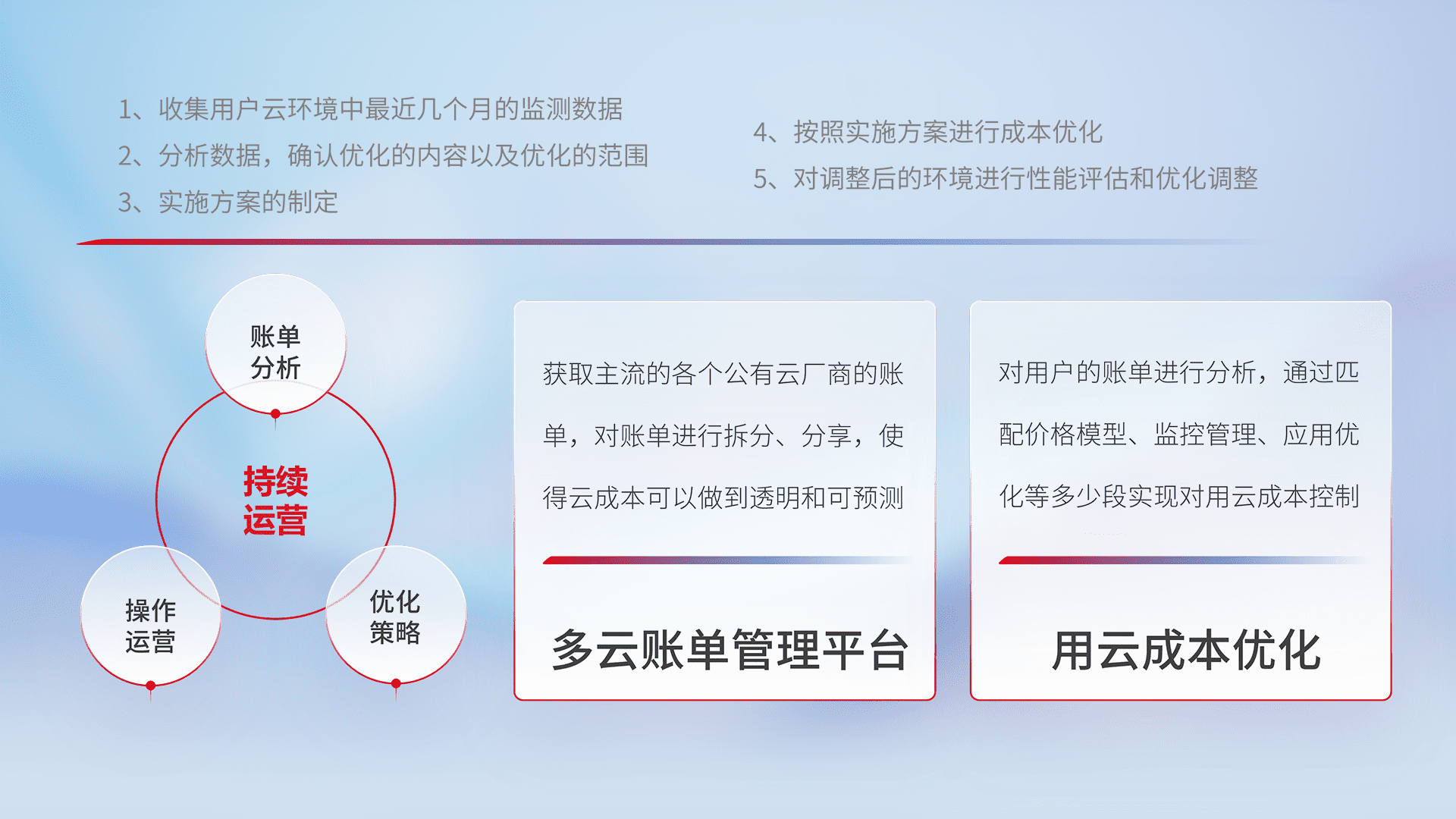 运用智能化工具分析云资源,,,,提供日常费用可视化工具,,自动账单拆分,,,,成本优化云上费用,,,,降本增效。。